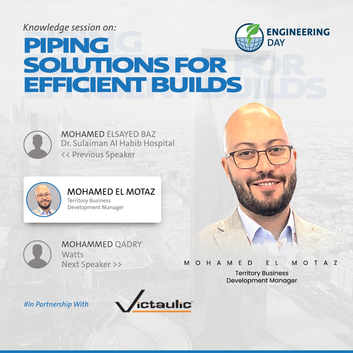 Ehab Eshak Area Sales Director NASEngineering Day is the premier event that brings together leading multinational engineering companies, contractors, municipalities, consultants, and mechanical engineers. This exclusive gathering offers an unparalleled platform to explore and discuss the latest technologies, innovative engineering solutions, and key project lines in the mechanical engineering market.
